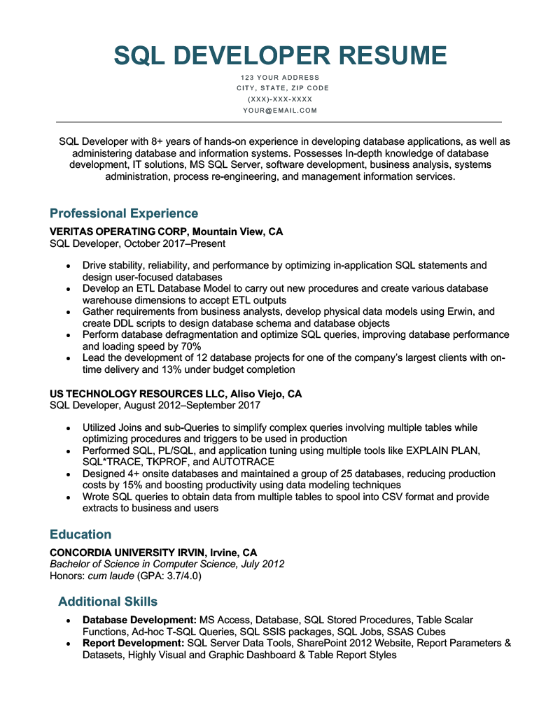 ![SQL Developer Resume [Sample & Writing Tips]](https://i0.wp.com/resumegenius.com/wp-content/uploads/SQL-Developer-Resume-Sample-1.png?ssl=1)